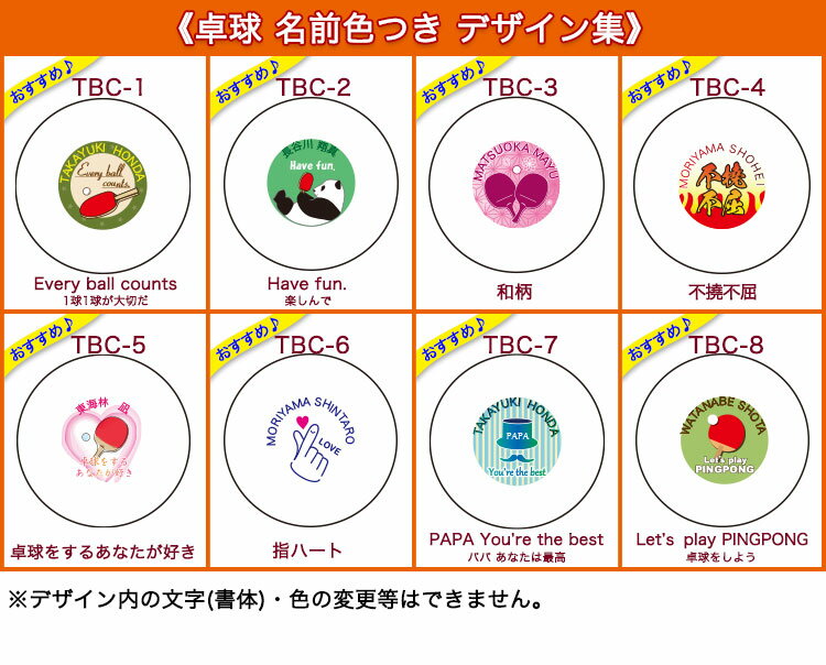 ↓↓ そんなあなたにオススメなのが ↓↓ 1個ずつ好きなデザインで名入れができる! 練習用で使うもよし、保存用としてお家に飾るもよし! 卓球仲間同士でお揃いのボールを持てば、 団結力が深まること間違いなし! 世界に一つのマイボールが卓球人生をより楽しいものにしてくれます。