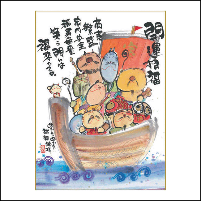元気のないお友達に、あなたの気持ちをこの絵に込めて贈ってもいいし、がんばっている自分へのご褒美にいかがですか・・・ 【メッセージ内容】 「開運招福 商売繁盛 家内安全 福寿無量 笑う門には 福来たる。